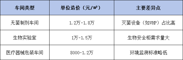 高效过滤器(HEPA):A级区需覆盖100%天花板,成本占比约30%;空调机组:变频控制+热回收功能,投资增加15%-20%;