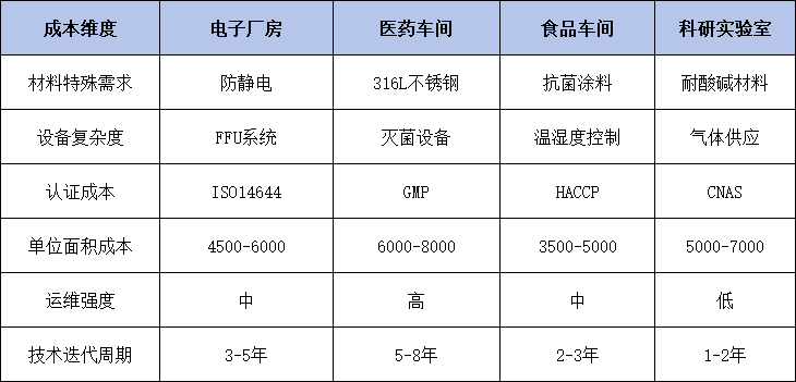 百级洁净装修成本体系呈现"三维驱动"特征: